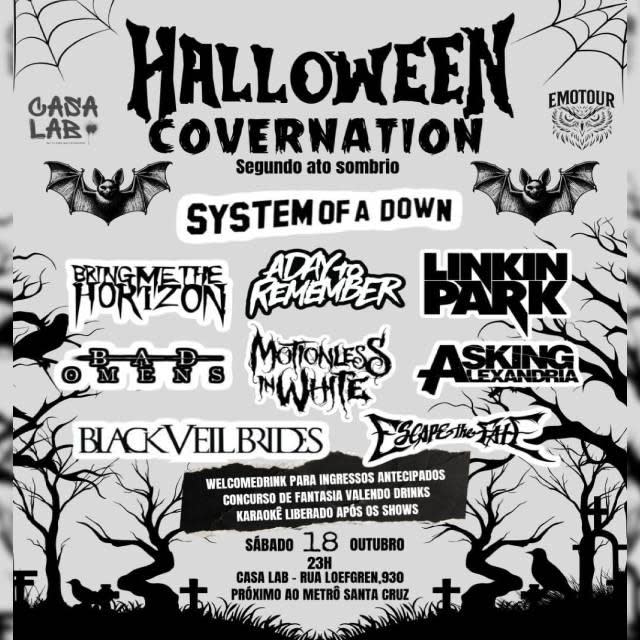 Ajude o site a se manter comprando através dos links patrocinados Camiseta Linkin Park Disponível na Camiseta Feminina Linkin Park Numb Disponível na Camiseta Dio Holy Diver Disponível na Camiseta Angra Angels Cry Disponível na Camiseta Iron Maiden Fear of The Dark Disponível na Camiseta Slayer Skullgram Disponível na Camiseta Anthrax Fistful Disponível na Camiseta System Of A Down Disponível na Camiseta Clássica Ramones Disponível na Camiseta Iron Maiden Killers Disponível na Camiseta Metallica Black Album Disponível na Camiseta Bathory Disponível na Camiseta Camiseta Megadeth Countdown To Extinction Disponível na Consulado do Rock, Camiseta Gojira From Mars To Sirius Preto Consulado OF0255 Disponível na Camiseta Nervosa Jailbreak Disponível na Camiseta Camiseta AC/DC Back In Black Disponível na Camiseta Angra Holy Land Disponível na Camiseta Engraçada Death Metal Arco Iris Banda De Rock Disponível na Camiseta Black Sabbath Us Tour 78 Disponível na Camiseta Camiseta Judas Priest Painkiller Disponível na It starts with one - Edição com brindes: A lenda e o legado do Linkin Park Disponível na O Livro dos Mortos do Rock: Revelações sobre a vida e a morte de sete lendas do Rock'n'Roll Disponível na Camiseta Nervosa Perpetual Chaos Disponível no Camiseta Ratos de Porão - 1981 Disponível no Camiseta Sepultura - Turnê de despedida Disponível no Camiseta Clássica Red Hot Chilli Peppers Disponível no Camiseta Matanza Odiosa Natureza Humana Disponível no Camiseta Crypta Disponível no Camiseta Bon Jovi - Greatest Hits Disponível no Camiseta Krisiun Necronomical Disponível no Halloween Covernation - Segundo Ato Sombrio @ São Paulo - SP      » Não perca outros eventos acontecendo em: Sao Paulo - SP Data: 18 Oct 2025 Endereço: Casa Lab - By Clube do Ingresso, Rua Loefgren 930, Vila Mariana, São Paulo, SP Ingressos: Clube do Ingresso Bandas: System of a Down Linkin Park Motionless in White Black Veil Brides Ajude o site a se manter comprando através dos links patrocinados Livro - In The End: A História de Chester Bennington Disponível na Chapéu Bucket Hat Linkin Park Disponível na Caneca Linkin Park Logo Disponível na Livro Death By Metal: A História de Chuck Schuldiner Disponível na Tênis Cano Alto Slipknot Disponível no Livro Lords of Chaos Disponível na Helloween. A História Completa Disponível na Autobiografia Lemmy Kilmister - A febre da linha branca Disponível na Livro Black Metal: A História Completa - Volume 1 Disponível na AC/DC: Álbum por Álbum Disponível na Livro Contos do rock: Histórias dos bastidores do rock brasileiro Disponível na Chaveiros emborrachados de bandas Disponível no Down with the System: Um livro de memórias (ou algo assim) Disponível na Rainbow in the Dark. A Autobiografia Disponível na Livro O Reino Sangrento do Slayer Disponível na Livro A História não Contada do Motörhead Disponível na Livro Black Metal: A História Completa - Volume 2 Disponível na Livro Mate-me por Favor: a História sem Censura do Punk Disponível na Braceletes Duplos de Couro Preto c/ 4 Fivela Ajustável Disponível no Livro Iron Maiden: Álbum por Álbum Disponível na Livro Led Zeppelin: A Biografia Disponível na