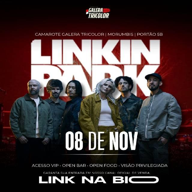 Ajude o site a se manter comprando através dos links patrocinados Camiseta Linkin Park Disponível na Camiseta Feminina Linkin Park Numb Disponível na Camiseta Dio Holy Diver Disponível na Camiseta Angra Angels Cry Disponível na Camiseta Iron Maiden Fear of The Dark Disponível na Camiseta Slayer Skullgram Disponível na Camiseta Anthrax Fistful Disponível na Camiseta System Of A Down Disponível na Camiseta Clássica Ramones Disponível na Camiseta Iron Maiden Killers Disponível na Camiseta Metallica Black Album Disponível na Camiseta Bathory Disponível na Camiseta Camiseta Megadeth Countdown To Extinction Disponível na Consulado do Rock, Camiseta Gojira From Mars To Sirius Preto Consulado OF0255 Disponível na Camiseta Nervosa Jailbreak Disponível na Camiseta Camiseta AC/DC Back In Black Disponível na Camiseta Angra Holy Land Disponível na Camiseta Engraçada Death Metal Arco Iris Banda De Rock Disponível na Camiseta Black Sabbath Us Tour 78 Disponível na Camiseta Camiseta Judas Priest Painkiller Disponível na It starts with one - Edição com brindes: A lenda e o legado do Linkin Park Disponível na O Livro dos Mortos do Rock: Revelações sobre a vida e a morte de sete lendas do Rock'n'Roll Disponível na Camiseta Nervosa Perpetual Chaos Disponível no Camiseta Ratos de Porão - 1981 Disponível no Camiseta Sepultura - Turnê de despedida Disponível no Camiseta Clássica Red Hot Chilli Peppers Disponível no Camiseta Matanza Odiosa Natureza Humana Disponível no Camiseta Crypta Disponível no Camiseta Bon Jovi - Greatest Hits Disponível no Camiseta Krisiun Necronomical Disponível no Linkin Park - Camarote Galera Tricolor @ São Paulo - SP      » Não perca outros eventos acontecendo em: Sao Paulo - SP Data: 08 Nov 2025 Endereço: Camarote Galera Tricolor, Praça Roberto Gomes Pedrosa, 1 - Portão 05, Morumbi, São Paulo, SP Ingressos: Clube do Ingresso Bandas: Linkin Park Ajude o site a se manter comprando através dos links patrocinados Livro - In The End: A História de Chester Bennington Disponível na Chapéu Bucket Hat Linkin Park Disponível na Caneca Linkin Park Logo Disponível na Livro Death By Metal: A História de Chuck Schuldiner Disponível na Tênis Cano Alto Slipknot Disponível no Livro Lords of Chaos Disponível na Helloween. A História Completa Disponível na Autobiografia Lemmy Kilmister - A febre da linha branca Disponível na Livro Black Metal: A História Completa - Volume 1 Disponível na AC/DC: Álbum por Álbum Disponível na Livro Contos do rock: Histórias dos bastidores do rock brasileiro Disponível na Chaveiros emborrachados de bandas Disponível no Down with the System: Um livro de memórias (ou algo assim) Disponível na Rainbow in the Dark. A Autobiografia Disponível na Livro O Reino Sangrento do Slayer Disponível na Livro A História não Contada do Motörhead Disponível na Livro Black Metal: A História Completa - Volume 2 Disponível na Livro Mate-me por Favor: a História sem Censura do Punk Disponível na Braceletes Duplos de Couro Preto c/ 4 Fivela Ajustável Disponível no Livro Iron Maiden: Álbum por Álbum Disponível na Livro Led Zeppelin: A Biografia Disponível na