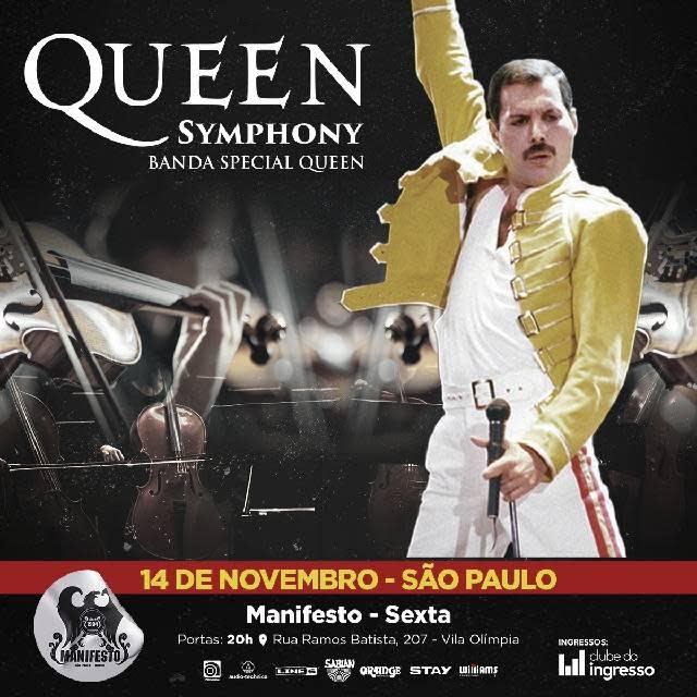 Ajude o site a se manter comprando através dos links patrocinados Camiseta Clássica Queen Disponível na Camiseta Queen - Bohemian Rhapsody Disponível na Camiseta Dio Holy Diver Disponível na Camiseta Angra Angels Cry Disponível na Camiseta Iron Maiden Fear of The Dark Disponível na Camiseta Slayer Skullgram Disponível na Camiseta Anthrax Fistful Disponível na Camiseta System Of A Down Disponível na Camiseta Clássica Ramones Disponível na Camiseta Iron Maiden Killers Disponível na Camiseta Metallica Black Album Disponível na Camiseta Bathory Disponível na Camiseta Camiseta Megadeth Countdown To Extinction Disponível na Consulado do Rock, Camiseta Gojira From Mars To Sirius Preto Consulado OF0255 Disponível na Camiseta Nervosa Jailbreak Disponível na Camiseta Camiseta AC/DC Back In Black Disponível na Camiseta Angra Holy Land Disponível na Camiseta Engraçada Death Metal Arco Iris Banda De Rock Disponível na Camiseta Black Sabbath Us Tour 78 Disponível na Camiseta Camiseta Judas Priest Painkiller Disponível na It starts with one - Edição com brindes: A lenda e o legado do Linkin Park Disponível na O Livro dos Mortos do Rock: Revelações sobre a vida e a morte de sete lendas do Rock'n'Roll Disponível na Camiseta Nervosa Perpetual Chaos Disponível no Camiseta Ratos de Porão - 1981 Disponível no Camiseta Sepultura - Turnê de despedida Disponível no Camiseta Clássica Red Hot Chilli Peppers Disponível no Camiseta Matanza Odiosa Natureza Humana Disponível no Camiseta Crypta Disponível no Camiseta Bon Jovi - Greatest Hits Disponível no Camiseta Krisiun Necronomical Disponível no Queen Symphony @ São Paulo - SP      » Não perca outros eventos acontecendo em: Sao Paulo - SP Data: 14 Nov 2025 Endereço: Manifesto Rock Bar, Rua Ramos Batista, 207 - Vila Olímpia Ingressos: Clube do Ingresso Ajude o site a se manter comprando através dos links patrocinados Livro - Freddie Mercury: A biografia definitiva Disponível na Funko POP! ROCKS: Queen - Freddie Mercury Wembley 1986, Multicor Disponível na Livro Iron Man: Minha jornada pelo céu e pelo inferno com o Black Sabbath Disponível na Livro Death By Metal: A História de Chuck Schuldiner Disponível na Tênis Cano Alto Slipknot Disponível no Livro Lords of Chaos Disponível na Helloween. A História Completa Disponível na Autobiografia Lemmy Kilmister - A febre da linha branca Disponível na Livro Black Metal: A História Completa - Volume 1 Disponível na AC/DC: Álbum por Álbum Disponível na Livro Contos do rock: Histórias dos bastidores do rock brasileiro Disponível na Chaveiros emborrachados de bandas Disponível no Down with the System: Um livro de memórias (ou algo assim) Disponível na Rainbow in the Dark. A Autobiografia Disponível na Livro O Reino Sangrento do Slayer Disponível na Livro A História não Contada do Motörhead Disponível na Livro Black Metal: A História Completa - Volume 2 Disponível na Livro Mate-me por Favor: a História sem Censura do Punk Disponível na Braceletes Duplos de Couro Preto c/ 4 Fivela Ajustável Disponível no Livro Iron Maiden: Álbum por Álbum Disponível na Livro Led Zeppelin: A Biografia Disponível na