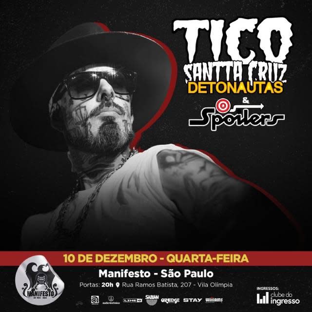 Ajude o site a se manter comprando através dos links patrocinados Camiseta Ozzy Ozbourne Bark at the Moon Disponível na Camiseta Metallica Master of Puppets Disponível na Camiseta Dio Holy Diver Disponível na Camiseta Angra Angels Cry Disponível na Camiseta Iron Maiden Fear of The Dark Disponível na Camiseta Slayer Skullgram Disponível na Camiseta Anthrax Fistful Disponível na Camiseta System Of A Down Disponível na Camiseta Clássica Ramones Disponível na Camiseta Iron Maiden Killers Disponível na Camiseta Metallica Black Album Disponível na Camiseta Bathory Disponível na Camiseta Camiseta Megadeth Countdown To Extinction Disponível na Consulado do Rock, Camiseta Gojira From Mars To Sirius Preto Consulado OF0255 Disponível na Camiseta Nervosa Jailbreak Disponível na Camiseta Camiseta AC/DC Back In Black Disponível na Camiseta Angra Holy Land Disponível na Camiseta Engraçada Death Metal Arco Iris Banda De Rock Disponível na Camiseta Black Sabbath Us Tour 78 Disponível na Camiseta Camiseta Judas Priest Painkiller Disponível na It starts with one - Edição com brindes: A lenda e o legado do Linkin Park Disponível na O Livro dos Mortos do Rock: Revelações sobre a vida e a morte de sete lendas do Rock'n'Roll Disponível na Camiseta Nervosa Perpetual Chaos Disponível no Camiseta Ratos de Porão - 1981 Disponível no Camiseta Sepultura - Turnê de despedida Disponível no Camiseta Clássica Red Hot Chilli Peppers Disponível no Camiseta Matanza Odiosa Natureza Humana Disponível no Camiseta Crypta Disponível no Camiseta Bon Jovi - Greatest Hits Disponível no Camiseta Krisiun Necronomical Disponível no Tico Santa Cruz com a Banda Spoilers @ São Paulo - SP      » Não perca outros eventos acontecendo em: Sao Paulo - SP Data: 10 Dec 2025 Endereço: Manifesto Rock Bar, Rua Ramos Batista, 207 - Vila Olímpia Ingressos: Clube do Ingresso Ajude o site a se manter comprando através dos links patrocinados O Último Ritual: As memórias finais de Ozzy Osbourne Disponível na Autobiografia Eu sou Ozzy (Edição especial com brindes) Disponível na Livro Iron Man: Minha jornada pelo céu e pelo inferno com o Black Sabbath Disponível na Livro Death By Metal: A História de Chuck Schuldiner Disponível na Tênis Cano Alto Slipknot Disponível no Livro Lords of Chaos Disponível na Helloween. A História Completa Disponível na Autobiografia Lemmy Kilmister - A febre da linha branca Disponível na Livro Black Metal: A História Completa - Volume 1 Disponível na AC/DC: Álbum por Álbum Disponível na Livro Contos do rock: Histórias dos bastidores do rock brasileiro Disponível na Chaveiros emborrachados de bandas Disponível no Down with the System: Um livro de memórias (ou algo assim) Disponível na Rainbow in the Dark. A Autobiografia Disponível na Livro O Reino Sangrento do Slayer Disponível na Livro A História não Contada do Motörhead Disponível na Livro Black Metal: A História Completa - Volume 2 Disponível na Livro Mate-me por Favor: a História sem Censura do Punk Disponível na Braceletes Duplos de Couro Preto c/ 4 Fivela Ajustável Disponível no Livro Iron Maiden: Álbum por Álbum Disponível na Livro Led Zeppelin: A Biografia Disponível na